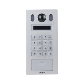 IP вызывная панель малоквартирной системы домофонии Dahua с поддержкой сети и погодозащитным исполнением; предназначена для установки на уличных входах и интеграции с мониторами серии VTH по IP. Страница розничного каталога малоабонентных вызывных панелей подтверждает совместимость в рамках IP‑домофонии и уличное исполнение...