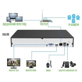 8‑канальный сетевой видеорегистратор для IP‑камер с записью до 1080p@25 к/с на канал, видеосжатие H.264, видеовыходы HDMI и VGA, поддержка управления PTZ‑камерами, наличие 4 тревожных входов и 1 выхода; поддерживает установку одного 3.5″ SATA HDD, в ряде описаний указано до 3 ТБ, конкретные лимиты зависят от прошивки партии...