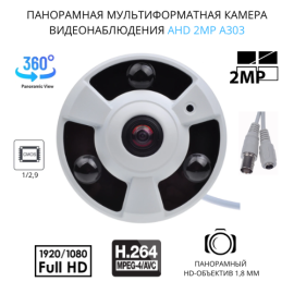 2МП панорамная мультиформатная купольная камера видеонаблюдения с поддержкой AHD/CVI/TVI/CVBS форматов. Широкий панорамный угол обзора 180°. Мультиформатность позволяет совместимость с большинством видеорегистраторов. Компактный дизайн в белом металлическом корпусе. Идеальна для входов, фойе и больших помещений...