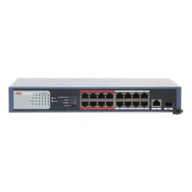 PoE‑коммутатор для систем видеонаблюдения с 16 портами питания PoE и 1 uplink‑портом; подходит для подключения камер HiWatch/Hikvision и других PoE‑устройств...